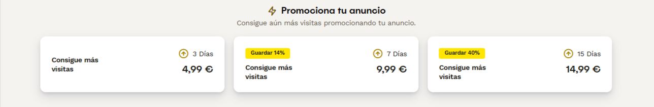 La principal novedad en la plataforma es la distinción entre el Paquete de anuncio (que se aplica mientras tu anuncio esté activo) y las Promociones (que dan un aumento de visibilidad a corto plazo a tu anuncio).